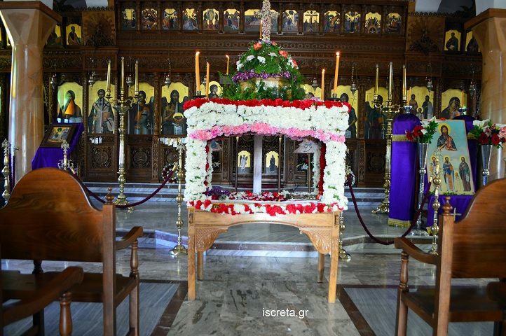 “Είχαν κάνει και οι λεπροί τον Επιτάφιό τους, είχαν ξαπλώσει κι αυτοί απάνω σε λεμονόφυλλα και δάφνες το Χριστό – μα ένα Χριστό δικό τους, που τον είχε ζωγραφίσει στα χρόνια τα παλιά ένας εκατοχρονίτης λωβιασμένος καλόγερος. Λεπρό τον είχε στορίσει ο καλόγερος ετούτος το Χριστό της Μεσκινιάς, του ‘χε φάει η αρρώστια τα δάχτυλα και τη μύτη, και το επανωχείλι του είχε αρχίσει κι αυτό να σαπίζει.Θύμωσε ο Μητροπολίτης του καιρού εκείνου, φώναξε τον καλόγερο: