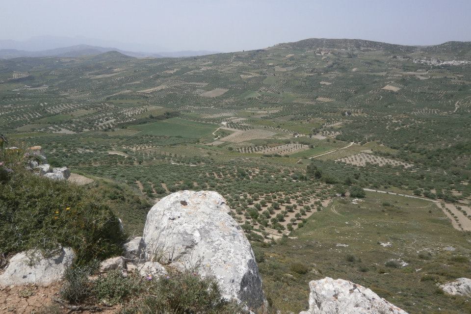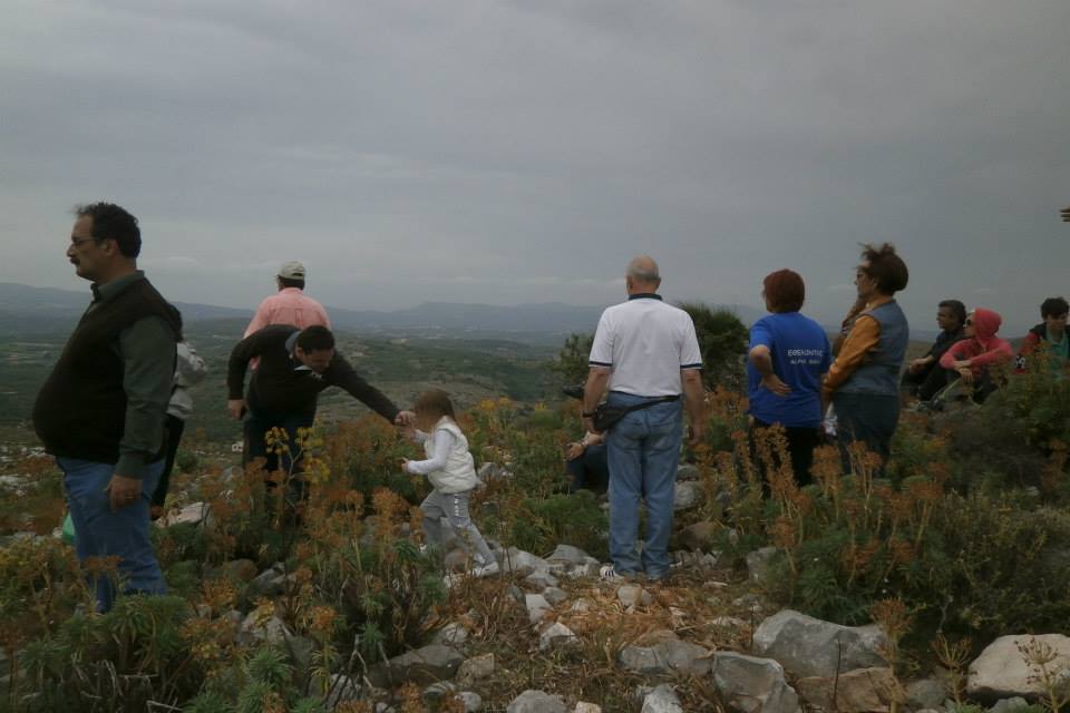 7Κυριακή στις 4 Μαΐου μια ομάδα περίπου 60 ατόμων, όλων των ηλικιών μαζί με αλλοδαπούς φίλους, μ’ ένα κομβόι 20 αυτοκινήτων, ακολουθώντας το κάλεσμα του νεοσύστατου συλλόγου «Συνομιλώντας με τον Μινωικό Πολιτισμό», περιδιαβαίνουμε πέντε φρυκτωρίες και άλλες προϊστορικές εγκαταστάσεις της Πεδιάδας με ξεναγό μας τον αρχαιολόγο Νίκο Παναγιωτάκη. Αρχές του Φλεβάρη παρακολουθήσαμε σε εκτεταμένη οπτικοακουστική παρουσίαση το αντίστοιχο μάθημα από τον ίδιο αρχαιολόγο στη «Σχολή Σχέσεων» στο Ηράκλειο στα πλαίσια ευαισθητοποίησης του κοινού του Ηρακλείου και της Κρήτης πάνω σε θέματα της μοναδικής μινωικής πολιτιστικής μας κληρονομιάς. Το πρόγραμμα μας είναι εξαιρετικά απαιτητικό. Σκαρφαλώνουμε μέσα από δύσβατα μονοπάτια, πνιγμένα στην ανοιξιάτικη βλάστηση, ξεγλιστρώντας ανάμεσα σε βράχια, πέτρες, βάτα κι αγκάθια.