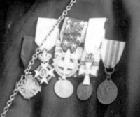 Λεπτομέρεια από πρωτότυπη φωτογραφία του παπά-Νουφράκη, τραβηγμένη το 1930. Δείχνει τα παράσημα που κοσμούν το στήθος του και δημοσιεύεται με την ελπίδα πως ίσως βοηθήσει στο μέλλον κάποιο επιμελέστερο βιογράφο του ανδρός