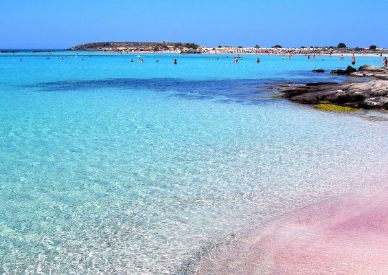 1. Ελαφονήσι – Κρήτη Το Ελαφονήσι είναι η παραλία «κόσμημα» της νοτιοδυτική Κρήτη που λατρεύουν τόσο οι Έλληνες όσο και οι ξένοι τουρίστες για τα γαλαζοπράσινα νερά και την ροζ, σε αρκετά σημεία, άμμο της. Είναι μια στενόμακρη χερσόνησος, η οποία συχνά «σπάει» στην αρχή της, δίνοντας την αίσθηση ξεχωριστού νησιού. Για να την προσεγγίσετε πρέπει να περπατήσετε 200 μέτρα της λιμνοθάλασσας που μεσολαβεί. Έχει ενταχθεί στις προστατευόμενες περιοχές Natura, καθώς είναι γεμάτο αμμοθίνες με κρινάκια της άμμου και κέδρους. Επίσης, εδώ φωλιάζουν οι απειλούμενες χελώνες careta careta και πολλά είδη σπάνιων ζώων. Απαγορεύεται αυστηρά να κόψετε φυτά ή να πάρετε ακόμη και ένα μπουκαλάκι με άμμο μαζί σας.