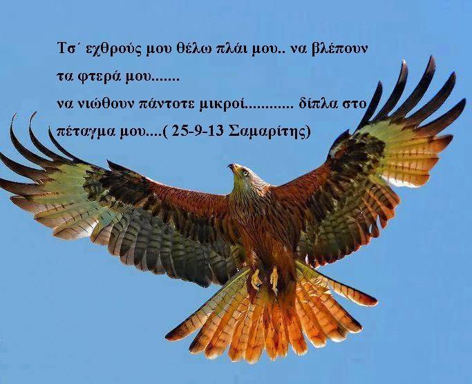 “Τσ΄εχθρούς μου θέλω πλάι μου να βλέπουν τα φτερά μου