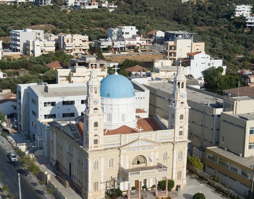 Οι τοίχοι φτιάχτηκαν από λαξευτή πέτρα με διακοσμητικά αρχιτεκτονικά στοιχεία. Η μελέτη και η επίβλεψη της κατασκευής του τρούλου και των καμπαναριών ανατέθηκε στον αρχιτέκτονα Αναστάσιο Λογοθέτη από τη Σύρο που είχε μυηθεί, στο εξωτερικό, στα μυστικά του τότε νεοεμφανιζόμενου μπετόν. Έτσι η αναδομή και το τέμπλο έγιναν από τσιμέντο, υλικό που χρησιμοποιήθηκε τότε για πρώτη φορά στην Κρήτη.