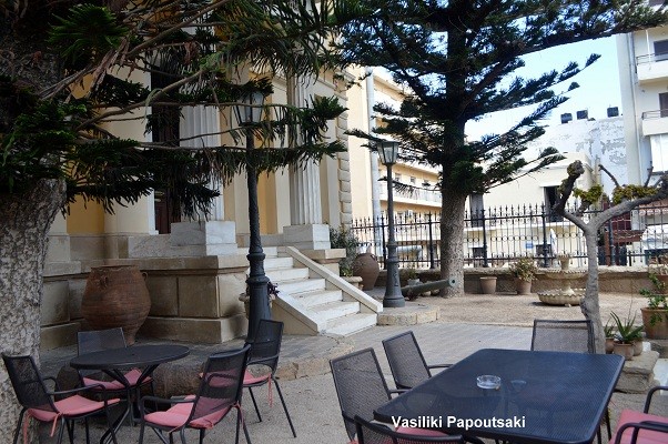 Το καφέ του ΙΜΚ, βρίσκεται στο 1ο επίπεδο του κτιρίου σε ένα στεγασμένο και δύο υπαίθριους χώρους, το βορινό deck που βλέπει στη θάλασσα και τη νοτική αυλή στη σκιά των ψηλών δέντρων της πρόσοψης του νεοκλασικού κτιρίου. Λειτουργεί ως self service και διαθέτει καφέ, ροφήματα, αναψυκτικά, χυμούς και φαγητό. Το κάπνισμα απαγορεύεται σε όλους τους εσωτερικούς χώρους του κτιρίου.