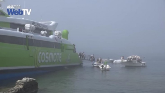 Με καΐκια που έσπευσαν άμεσα στο σημείο, στο οποίο προσάραξε το Flying Cat 4 της HELLENIC SEAWAYS στην Τήνο λίγο έξω από το λιμάνι λόγω της πυκνής ομίχλης, κατάφεραν να απεγκλωβιστούν οι επιβάτες με ασφάλεια και χωρίς να δημιουργηθεί κάποιο ιδιαίτερο πρόβλημα. Το έργο του συντονισμού της μετεπιβίβασης των τουριστών είχε αναλάβει ο λιμενάρχης της Τήνου.
