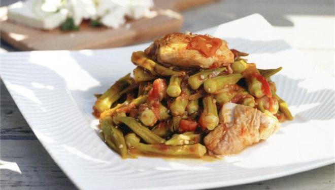 Σε ένα τηγάνι τηγανίζω τις μπάμιες (προσέχω να μην μαυρίσουν). Τις βγάζω με μια τρυπητή κουτάλα και τις προσθέτω στην κατσαρόλα που έχει βράσει το κοτόπουλο. Τις αφήνω για περίπου 10 λεπτά και σβήνω την φωτιά.