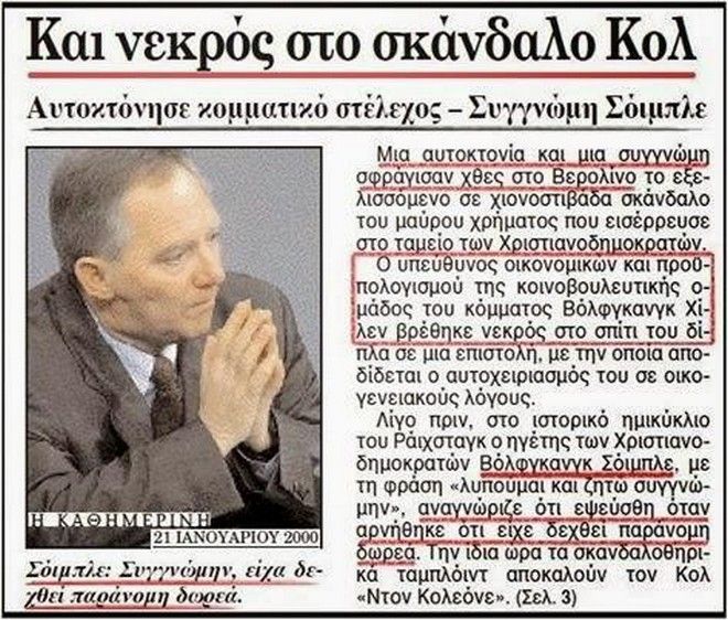 Η στάση του Κολ, αλλά και οι εξελίξεις των σκανδάλων “εξανάγκασαν” τον ηγέτη του CDU, Βόλφγκανγκ Σόιμπλε να ζητήσει συγνώμη από τη Βουλή.