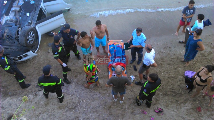 Ευτυχώς δεν υπήρχε κάποιος λουόμενος εκείνη την στιγμή στο σημείο της ανατροπής του αυτοκινήτου