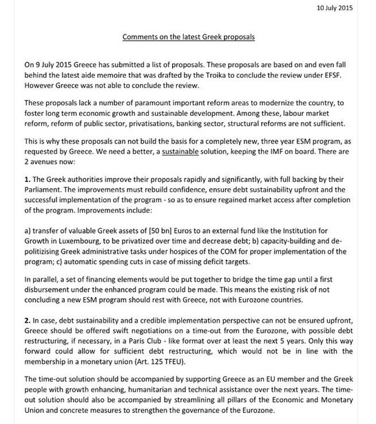 Πάντως, ο ανταποκριτής του Skynews στις Βρυξέλλες δηλώνει ότι το έγγραφο Σόιμπλε είναι μάλλον για εσωτερική κατανάλωση.