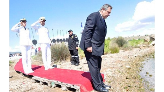 Μια αυτοσχέδια κατασκευή να μην πατήσει ..άμμο το σκαρπίνι του Υπουργού Εθνικής Άμυνας, όταν ο ίδιος απέτισε φόρο τιμής στους πεσόντες στη Ναυμαχία της Σαλαμίνας. Μπράβο ευριματικότητα!
