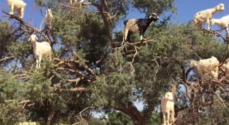 Δεκάδες κατσίκες αποφάσισαν να γευματίσουν ανεβαίνοντας στα κλαδιά ενός δέντρου με αποτέλεσμα αυτόματα να γίνουν το πιο περίεργο «στολίδι».