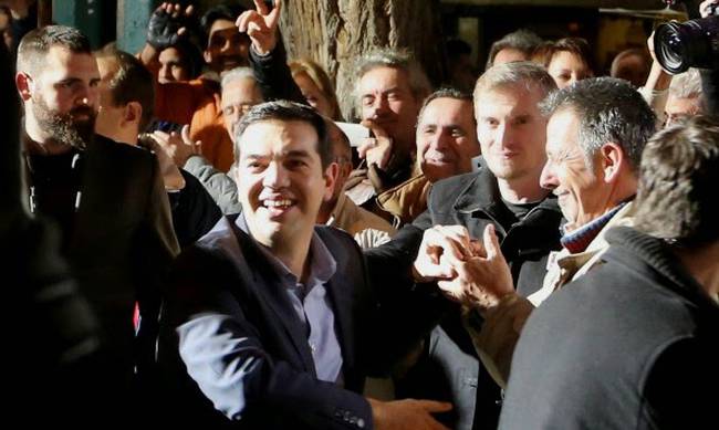Ενθουσιώδη υποδοχή επιφύλαξαν δεκάδες οπαδοί του ΣΥΡΙΖΑ στον πρόεδρο του κόμματος Αλέξη Τσίπρα ο οποίος στις 8.15 μμ έφθασε στα κεντρικά γραφεία στην πλατεία Κουμουνδούρου συνοδευόμενος από τη σύζυγό του.