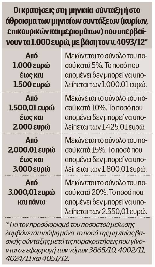 Στην επανανομοθέτηση παρακρατήσεων – περικοπών στις συντάξεις, από νέα βάση και ενδεχομένως κάτω και από το μηνιαίο εισόδημα των 1.000 ευρώ των συνταξιούχων, θα υποχρεωθεί να προχωρήσει η κυβέρνηση που θα προκύψει από τις εκλογές της 20ής Σεπτεμβρίου. Το «κούρεμα» προεξοφλούν μέλη της Επιτροπής των 12 «σοφών» που έχει συγκροτηθεί για να προτείνει, πέρα από τις «βελτιώσεις» στο γενικό Ασφαλιστικό, και… δημοσιονομικό «ισοδύναμο» για την απόφαση του ΣτΕ, το οποίο έχει κρίνει, μαζί με άλλα μέτρα, ως «αντισυνταγματικές» τις παρακρατήσεις εισφορών 5% – 20% στο άθροισμα των συντάξεων πάνω από τα 1.000 ευρώ.