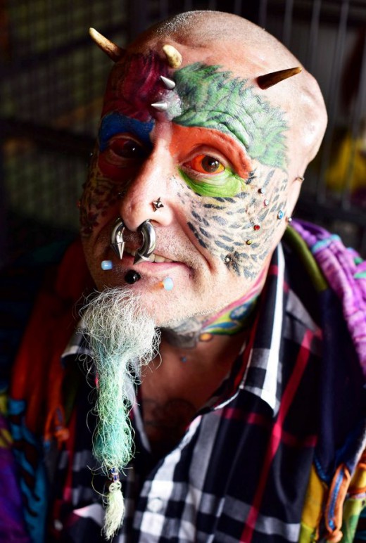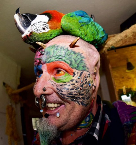 Ο εκκεντρικός φιλόζωος, ο οποίος έχει 110 τατουάζ, 50 piercing και κομμένη στα δύο γλώσσα, έκανε επέμβαση έξι ωρών για να αφαιρέσει τους λοβούς του, ενώ τόνισε ότι είναι πολύ ικανοποιημένος με την εμφάνισή του: «Είναι το καλύτερο πράγμα που μου έχει συμβεί. Είμαι τόσο χαρούμενος που είναι εξωπραγματικό, δεν μπορώ να σταματήσω να κοιτάζομαι στον καθρέφτη. Το έκανα γιατί θέλω να μοιάσω με τους παπαγάλους μου όσο το δυνατόν περισσότερο». Ο Richards, είναι συνταξιούχος εργάτης σε εργοστάσιο υποδημάτων, έκανε το πρώτο τατουάζ του το 1976 και από τότε έχει δημιουργήσει μια συλλογή που καλύπτει σχεδόν ολόκληρο το σώμα του.