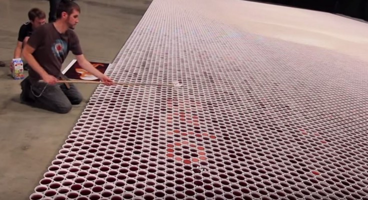 Ο καλλιτέχνης Belo Serge θέλοντας να ευαισθητοποίησει την κοινή γνώμη σχετικά με την παγκόσμια κρίση στο καθαρό νερό, πήρε 66.000 βιοδιασπώμενα και λιπασματοποιήσιμα ποτήρια, τα γέμισε με 15.000 λίτρα χρωματιστό νερό της βροχής και δημιούργησε ένα εντυπωσιακό έργο τέχνης.