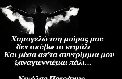 “Χαμογελώ τση μοίρας μου δεν σκύβω το κεφάλι και μέσα απ΄τα συντρίμμια μου ξαναγεννιέμαι...