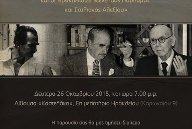 Διάλεξη με θέμα Ο Καστρινός Νίκος Καζαντζάκης και οι Ηρακλειώτες Μενέλαος Παρλαμάς και Στυλιανός Αλεξίου