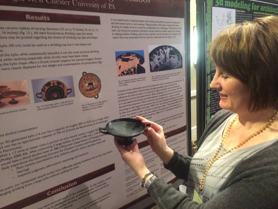 Dr. Sharpe του Πανεπιστημίου της Πενσυλβάνιας εξέτασε τα αρχαίο ελληνικό παιχνίδι κατανάλωσης κρασιού Κότταβος στο οποίο εμπλέκονταν άνδρες οι οποίοι έπιναν κρασί μέσα από τον κύλικα,ειδική κούπα στα συμπόσια της αρχαίας Αθήνας.