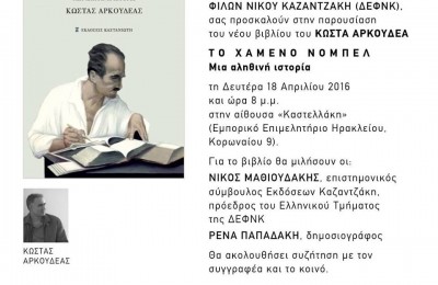 Το Σάββατο 7 Νοεμβρίου, το ΜΝΚ θα βρίσκεται στο παλιό κτίριο της Δημοτικής Βιβλιοθήκης (Ταξιάρχου Μαρκοπούλου 46) και προσκαλεί παιδιά και γονείς να ανακαλύψουν τον Νίκο Καζαντζάκη με αφορμή τα προσωπικά του αντικείμενα, τις οικογενειακές φωτογραφίες και τα βιβλία του.