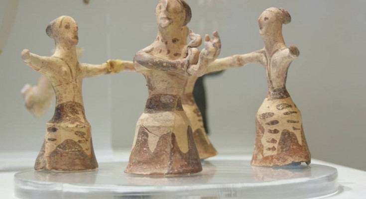 Πήλινο ομοίωμα που απεικονίζει κυκλικό χορό γυναικών με τη συνοδεία μουσικής από λύρα . Παλαίκαστρο 1350 π.Χ. (Αρχαιολογικό Μουσείο Ηρακλείου)