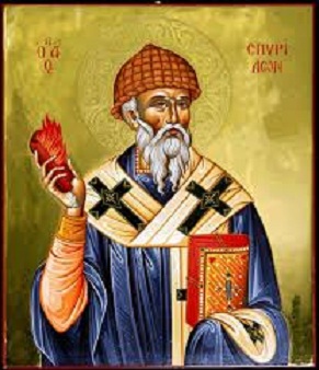 Έπειτα απ’τη γιορτή τ’ Άη-Νικόλα, στις 12 του μήνα έρχεται ο Άη-Σπυρίδωνας, που ο λαός μας πιστεύει πως θεραπεύει τα σπυριά και διώχνει την πανούκλα. Κι ακόμα, οι ξωμάχοι μας πιστεύουν πως είναι ο βοηθός τ’ Άη-Νικόλα σε στεριές και θάλασσες και χαλάει τα παπούτσια του τρέχοντας εδώ κι εκεί να βοηθήσει αυτούς που κινδυνεύουν. Δεν σταματάνε κι οι δυο τούτοι Άγιοι, λέει ο λαός μας. Πάντοτε βρίσκονται κάπου και βοηθούν, βοηθούν αυτούς που κινδυνεύουν στ’ανοιχτά πέλαγα και δέρνονται στ’αρμυρονέρια της θάλασσας.