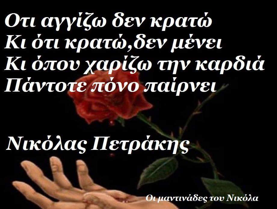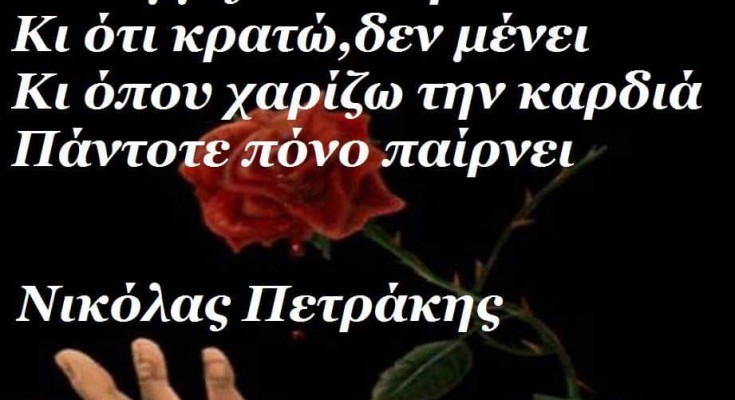 κι όπου χαρίζω την καρδιά πάντοτε πόνο παίρνει