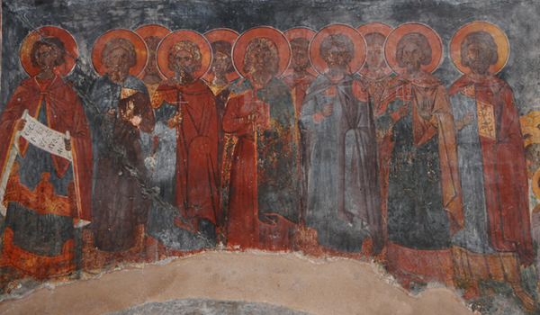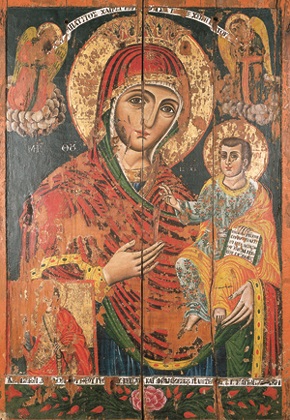 Στο κλίτος του Αγίου Αντωνίου σώζονται τοιχογραφίες του 14ου αγώνος παλαιολόγοι επιρροής. Κατά το τέλος του 16ου αιώνος βρισκόταν εδώ και εργάστηκε ο μεγάλος Κρητικός ζωγράφος Μιχαηλ Δαμασκηνός.