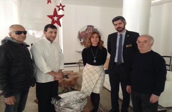 H διευθύντρια του Grecotel Pallas Athena Μαίρη Καρασούλη, ο σεφ Γιάννης Ξενικάκης και το προσωπικό του ξενοδοχείου μαζί με εκπροσώπους των Γηροκομείων