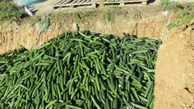 Σαράντα τόνοι αγγουριών οδηγήθηκαν σε ένα μεγάλο λάκκο που ανοίχτηκε σήμερα έξω από τον Αγροτοβιομηχανικό Συνεταιρισμό Τυμπακίου. Και μια λεπτομέρεια. Μετά από επικοινωνία του κ. Χαραλαμπάκη με τον Περιφερειάρχη Κρήτης, ο αρμόδιος υπάλληλος επικοινώνησε με τον ΑΣ Τυμπακίου, ενώ χθες έγινε και παγκρήτια σύσκεψη προκειμένου να οργανωθεί το θέμα της απόσυρσης. Η Περιφέρεια θα παραλαμβάνει προϊόντα από τις 16 Δεκεμβρίου… Τα αγγούρια ωστόσο είναι ευπαθή προϊόντα και δεν μπορούν να περιμένουν….