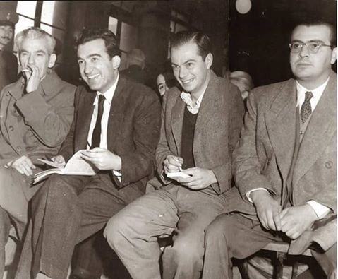 Με το τσιγάρο αριστερά Νόκος Καλούμενος. Δεξιά του ο Νίκος Μπελογιάννης. Δίπλα πιο δεξιά ο Ηλίας Αργυριάδης. Τελευταίος δεξιά ο Δημήτρης Μπάτσης.