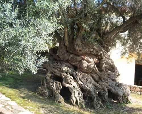 Το εντυπωσιακό αυτό δένδρο στην βάση του είναι αγριελιά (πράγμα που επιβεβαιώνει την αρχέγονη φύση της) και στην συνέχεια εξημερώθηκε από τον άνθρωπο με την ποικιλία τσουνάτη.