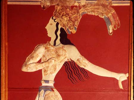 «Εδώ -γράφει ο Νίκος Καζαντζάκης στην Αναφορά στον Γκρέκο- η ψυχή της Ελλάδας εξετέλεσε τη μοιραία της αποστολή: έφερε το θεό στην κλίμακα του ανθρώπου. Τα τεράστια, ασάλευτα αιγυπτιακά ή ασσυριακά αγάλματα έγιναν εδώ, στην Κρήτη, μικρά χαριτωμένα. Το σώμα κινήθηκε, το στόμα χαμογέλασε και το πρόσωπο και το μπόι του θεού πήρε το πρόσωπο και το μπόι του ανθρώπου».
