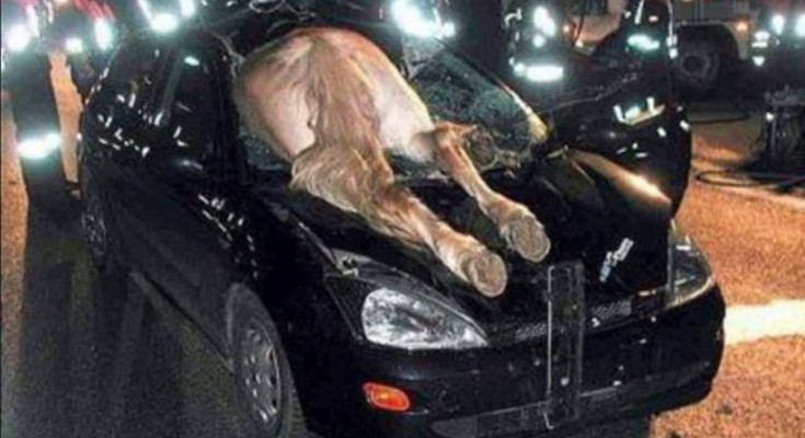 Αυτοκίνητο τράκαρε με άλογο! Σκοτώθηκε το άτυχο ζώο, ο οδηγός δεν τραυματίστηκε, και το αυτοκίνητο έπαθε σοβαρές υλικές ζημιές.