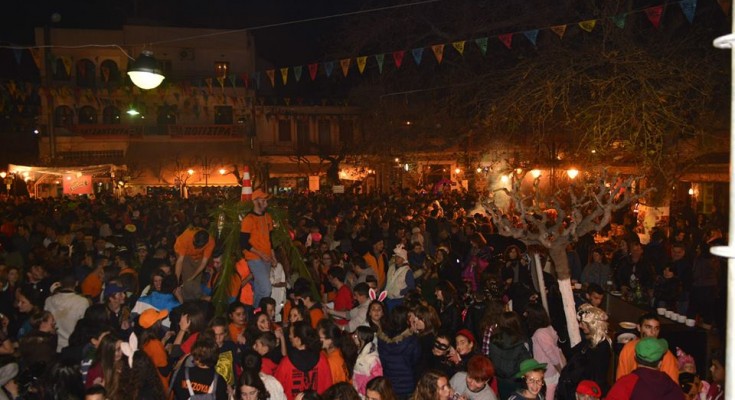 Η πομπή του καρναβαλιού ξεκίνησε πίσω από το μικρό Άγιο Μηνά και συνέχισε στην Πλατιά Στράτα . Στην αρχή της πομπής ήταν ο Σκάχτρης δηλαδή ο ξυλοπόδαρος, δίπλα του κινούνταν οι πατσούροι που φορούσαν μουτσούνες από προβιές και κρατούσαν βούκινα και χοντρές αλυσίδες και ακολουθούσε το γαϊτανάκικαι η μπάντα .