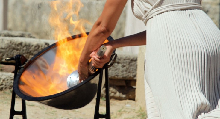 Το ιερό Φως του Ολυμπισμού θα γεννηθεί στα χέρια της Πρωθιέρειας Κατερίνας Λέχου που θα μεταλαμπαδεύσει την Φλόγα στον πρώτο Λαμπαδηδρόμο, τον Παγκόσμιο Πρωταθλητή της γυμναστικής Λευτέρη Πετρούνια.