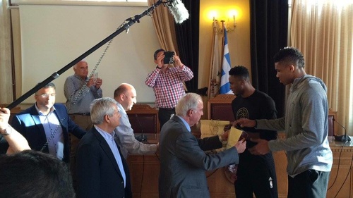 Τα αδέλφια Γιάννη και Θανάση Αντετοκούνμπο, που κάνουν καριέρα στο ΝΒΑ, υποδέχτηκε στη Λότζια ο Δήμαρχος Ηρακλείου κ. Βασίλης Λαμπρινός παρουσία και του Αντιδημάρχου Αθλητισμού κ. Κώστα Βαρδαβά. Ο Δήμαρχος Ηρακλείου κατά τη διάρκεια της συνάντησης αναφέρθηκε στη μεγάλη προσφορά τους στον αθλητισμό και στη συμβολή τους στην προβολή της χώρα μας αφού κάθε αναφορά στις σπουδαίες επιδόσεις τους στο μπάσκετ αλλά και στο ήθος τους συνοδεύεται από θετικά σχόλια και κρίσεις για την Ελλάδα, κάτι που τώρα είναι περισσότερο χρήσιμο από ποτέ.