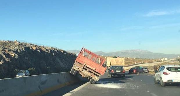 Στο Ηράκλειο σκαρφάλωσε το φορτηγό στο διαχωριστικό της εθνικής οδού!