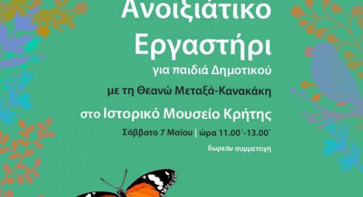 Το εργαστήριο θα πραγματοποιηθεί το Σάββατο 7 Μαίου από τις 11 το πρωί έως τη 1 μετά το μεσημέρι, στο αμφιθέατρο του Ιστορικού Μουσείου Κρήτης.