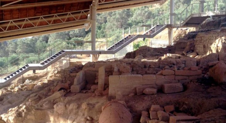 Κάτω από το επιβλητικό στέγαστρο των 1.300 τ.μ. που προστατεύει, «ασπίζει» τον αρχαιολογικό χώρο