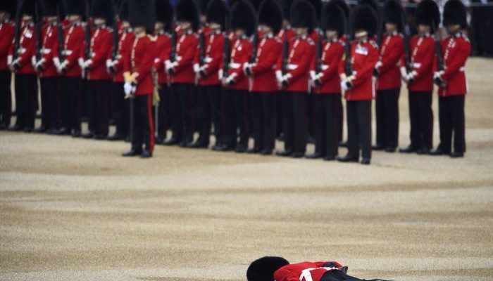 Ομως, ένας από τους φρουρούς που συμμετείχαν στην παρέλαση δεν άντεξε μέσα σε αυτή την ομολογουμένως ασφυκτική στολή και λιποθύμησε, με αποτέλεσμα όχι μόνο να χαλάσει τους εορτασμούς αλλά και να προκαλέσει ανησυχία για την κατάσταση της υγείας του.