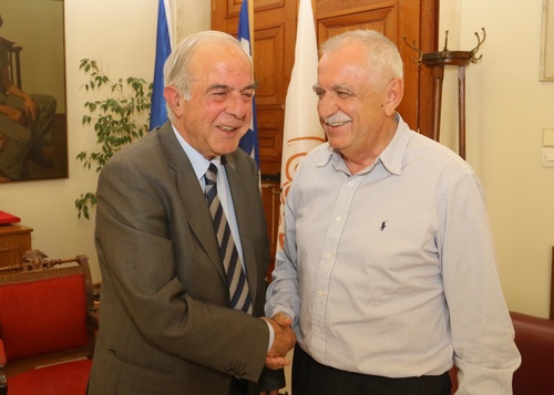 Με τον πρόεδρο του σωματείου «Διάζωμα», πρώην Υπουργό και Δήμαρχο Καλαμάτας κ. Σταύρο Μπένο και τους συνεργάτες του κ. Ζηρίνη και κ. Χατζηνικολάου, συναντήθηκε σήμερα στη Λότζια ο Δήμαρχος Ηρακλείου κ. Βασίλης Λαμπρινός. Στη συνάντηση συζητήθηκε το ενδεχόμενο μίας συνεργασίας που στο επίκεντρο της θα είναι η ανάδειξη των μνημείων του Ηρακλείου και η ένταξη τους στην καθημερινότητα των πολιτών.
