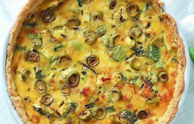 Γέμιση. Αλατίζουμε τα κολοκυθάκια και τα αφήνουμε σε σουρωτήρι για 10 λεπτά, να βγάλουν τα υγρά τους. Σε ένα μπολ ανακατεύουμε την κρέμα γάλακτος με τους κρόκους. Προσθέτουμε τη μισή γραβιέρα, τα κολοκυθάκια, τις ελιές και τον βασιλικό και αλατοπιπερώνουμε.