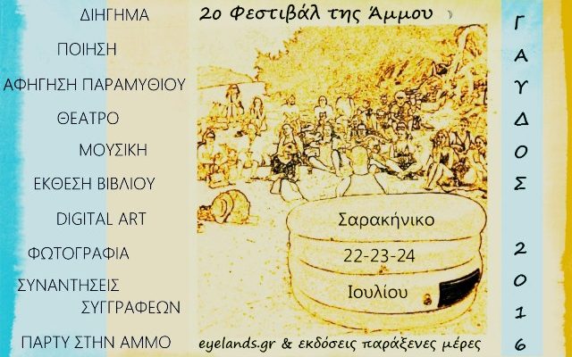 Το eyelands και οι εκδόσεις Παράξενες Μέρες σας προσκαλούν και σας περιμένουν στο δεύτερο φεστιβάλ της Άμμου, στο Σαρακήνικο της Γαύδου το τριήμερο 22,23,24 Ιουλίου.