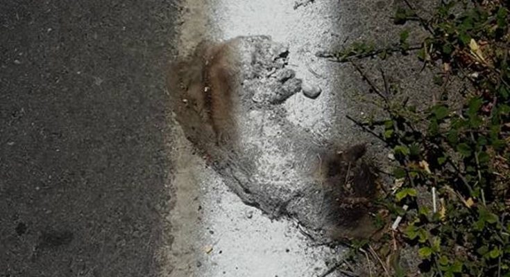 Οι υπεύθυνοι για τη διαγράμμιση μαζί με την άκρη του δρόμου έβαψαν και τα νεκρά ζώα που κείτονταν, χωρίς να μπουν καν στον κόπο να τα περισυλλέξουν!