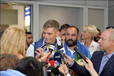 Με το ασημένιο μετάλλιο κρεμασμένο στον λαιμό του, ο Σπύρος Γιαννιώτης επέστρεψε στην Ελλάδα μετά τον θρίαμβό του στον μαραθώνιο κολύμβησης σε ανοιχτή θάλασσα στους Ολυμπιακούς Αγώνες του Ρίο.
