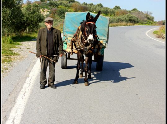 Το ίδιο συνέβαινε και στα καφενεία των χωριών. Τον κερνούσανε καμιά ρακή να ξαποστάσει. Ερχότανε με το γαϊδουράκι φορτωμένο, και αυτός με τα πόδια. Με τις ντενέκες του, τα κοφίνια του, την πραμάτεια του….