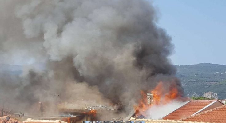 Φωτιά έχει ξεσπάσει εδώ και λίγη ώρα στο κέντρο της πόλης της Λευκάδας.
