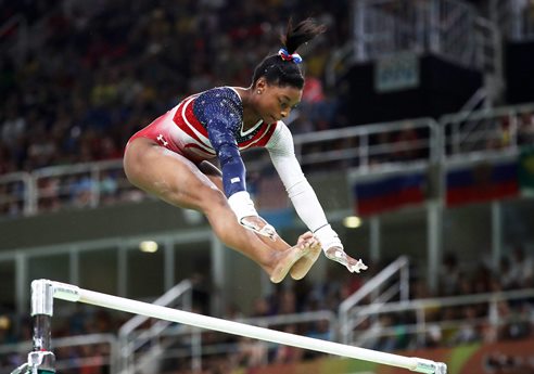 Η 19χρονη Αμερικανίδα Σιμόν Μπάιλς, το νέο μεγάλο αστέρι της ενόργανης γυμναστικής με ύψος 1,42 μ., έχει κερδίσει δύο χρυσά μετάλλια στο Ρίο και βάζει πλώρη για τρία ακόμη.