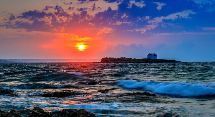 Aγναντεύοντας το λιόγερμα πίσω από το μεσοπέλαγο εκκλησάκι του Αφέντη Χριστού στα Μάλια, Βόρεια Κρήτη (Μια φωτογραφία χίλιες λέξεις)