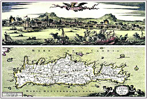 -Το 1645 μια δύναμη 50.000 Τούρκων, με εκατοντάδες πλοία, αποβιβάστηκε στις ακτές των Χανίων. Οι ελάχιστοι υπερασπιστές αγωνίστηκαν ηρωικά, αλλά παραδόθηκαν στις 22 Αυγούστου 1645.