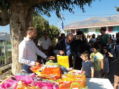 Ο Δήμαρχος παρακολούθησε την τελετή του αγιασμού και στη συνέχεια συνομίλησε με τα …πρωτάκια αλλά και με τους δασκάλους του σχολείου, ενημερώθηκε για τις ανάγκες και τα ανοικτά θέματα που υπάρχουν στο σχολείο της Τοπικής Κοινότητας που στις τάξεις του φιλοξενεί 140 περίπου μαθητές. Παράλληλα είχε την ευκαιρία να μοιράσει στα παιδιά δώρα για την έναρξη της σχολικής χρονιάς.